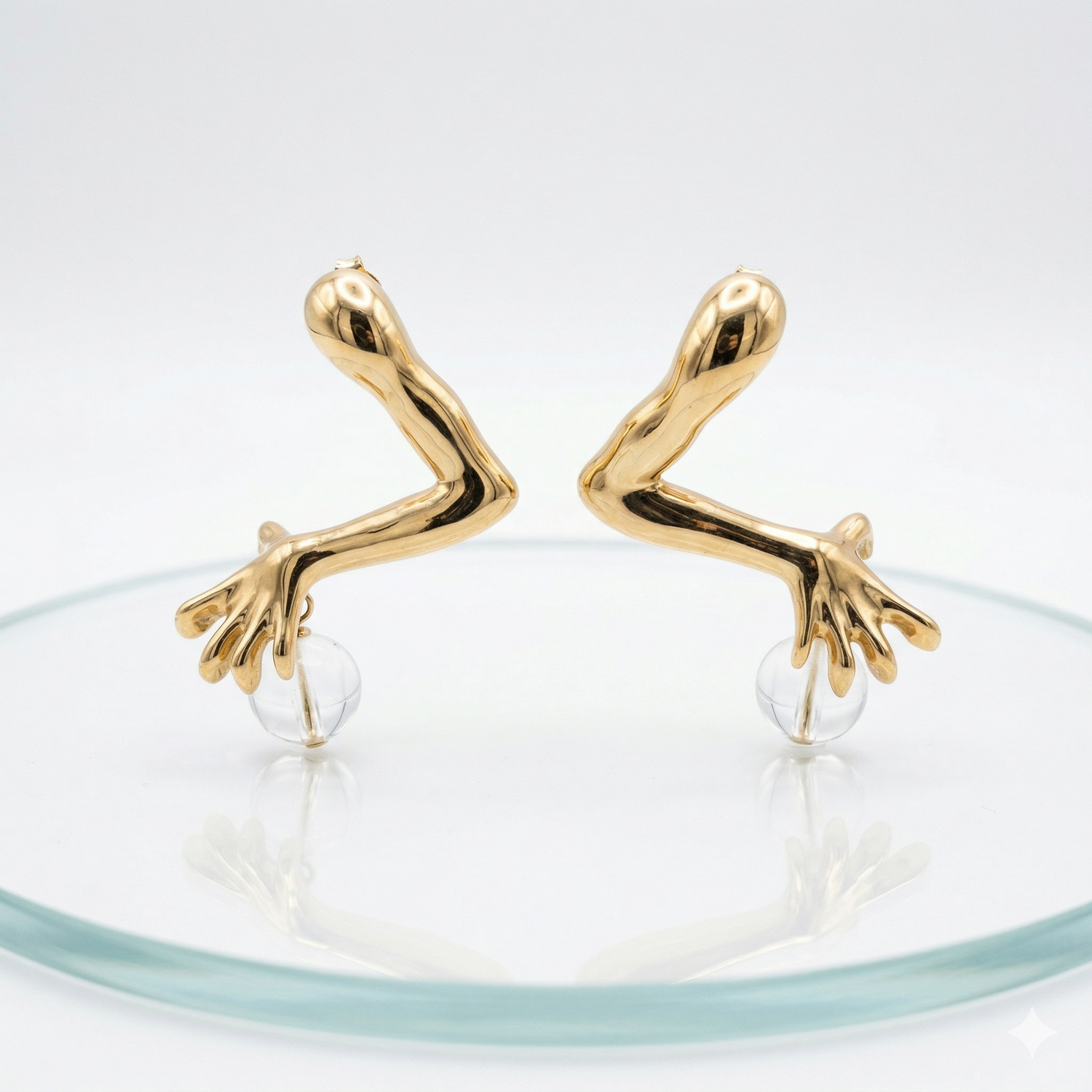 Due braccia tese in un’eterna brama, dita artigliate nell'atto di ghermire cristalli di rocca puri come prede. Un gioiello che si fa corpo e peccato, memento di una cupidigia cieca che non conosce tregua né pietà.