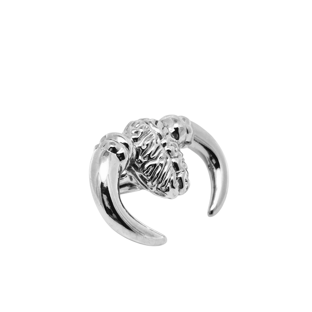 Un anello caratterizzato da un cervello centrale cinto da due poderose corna taurine: un invito a chi lo indossa a salvaguardare con vigore i propri ideali e le proprie convinzioni.